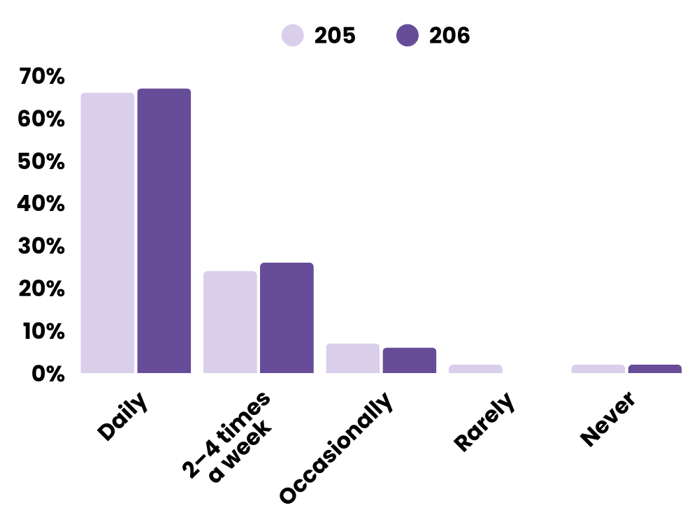 2–4 times a week: 24% → 26%