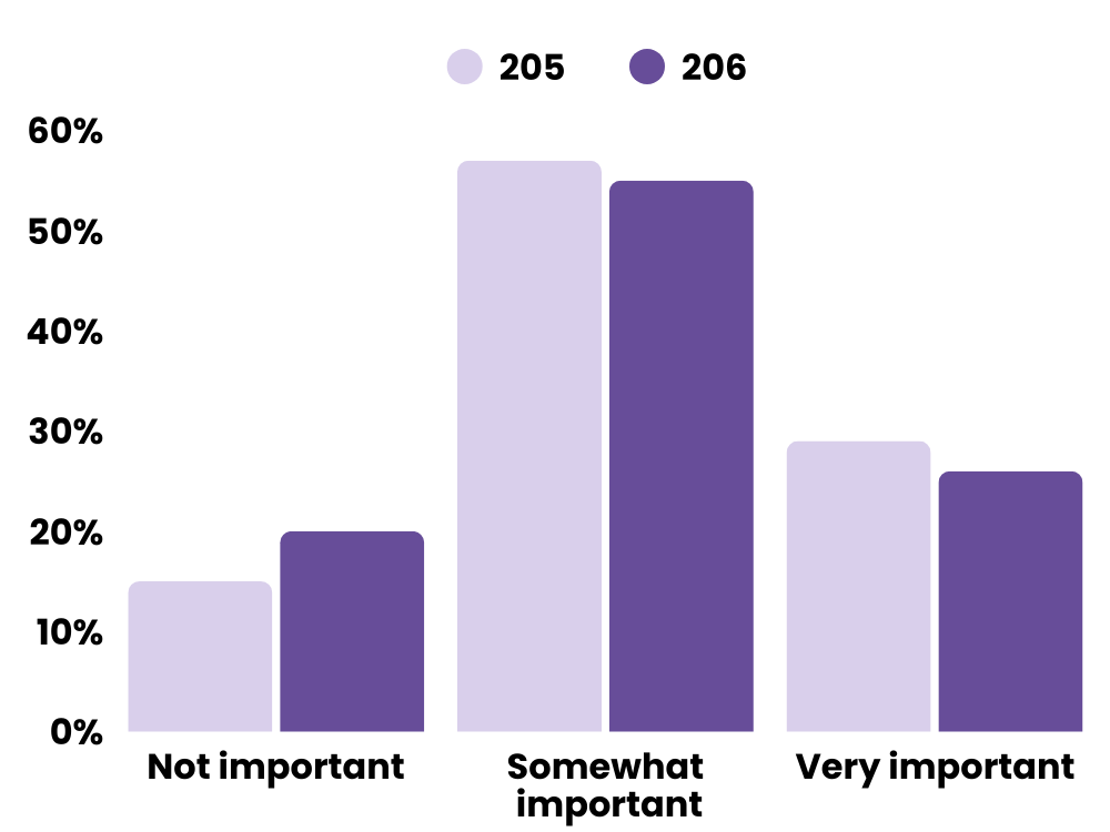 Somewhat important: 57% → 55%