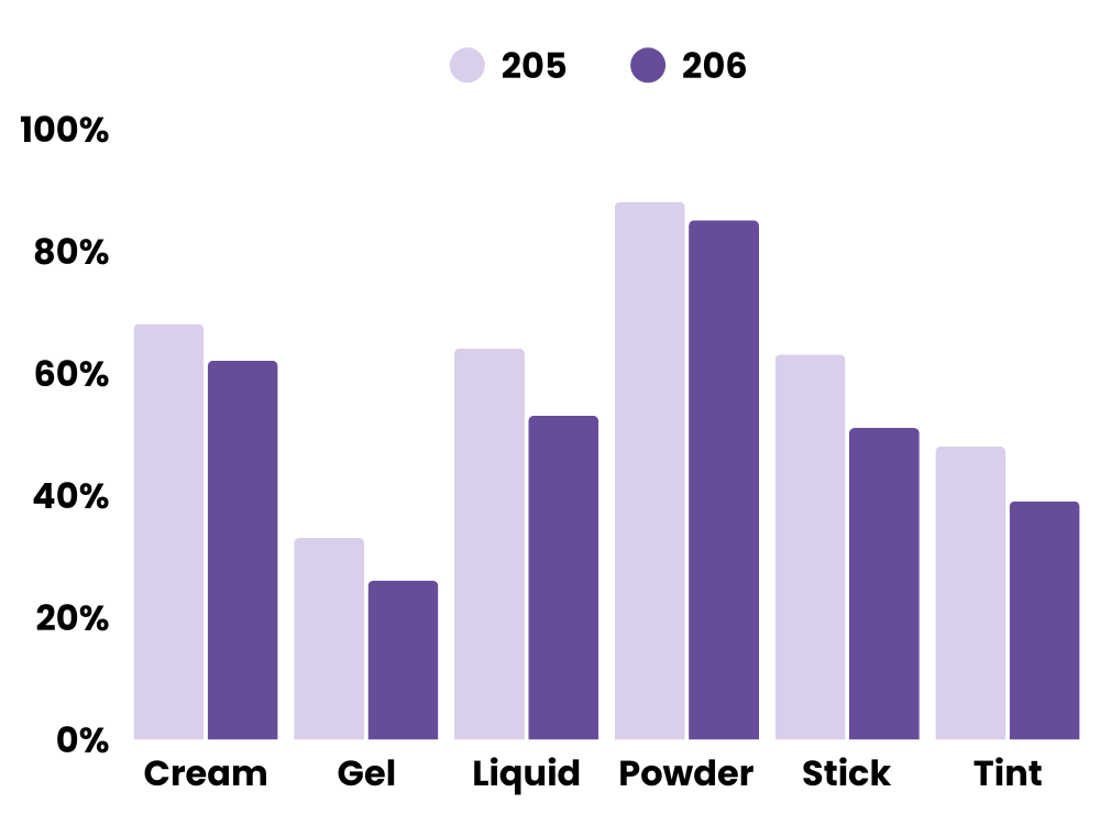 After years of cream and liquid momentum across social platforms, 2026 data suggests a stabilisation phase. Consumers appear to be returning to reliable, familiar formats — particularly powder — possibly linked to longevity, control, and brush-based application trends.