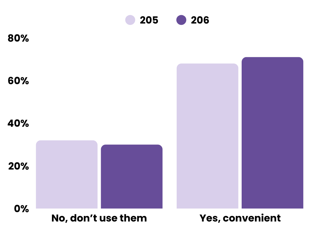 Yes, convenient: 68% → 71%