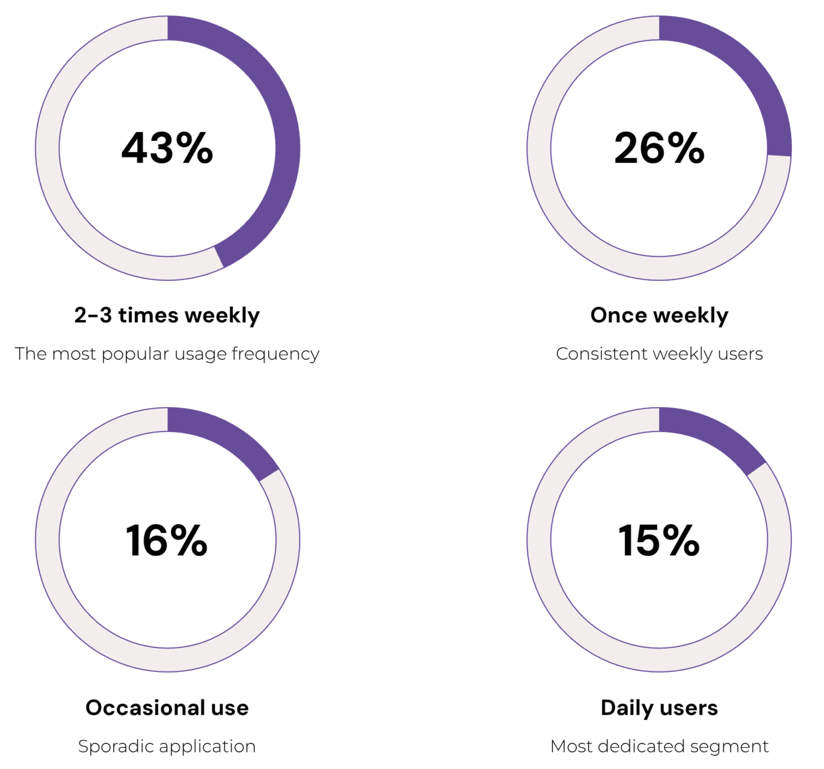 Meanwhile, 26% use them once a week, and 16% only occasionally. A smaller group, 15%, apply them daily, while just 2% rarely use such treatments.